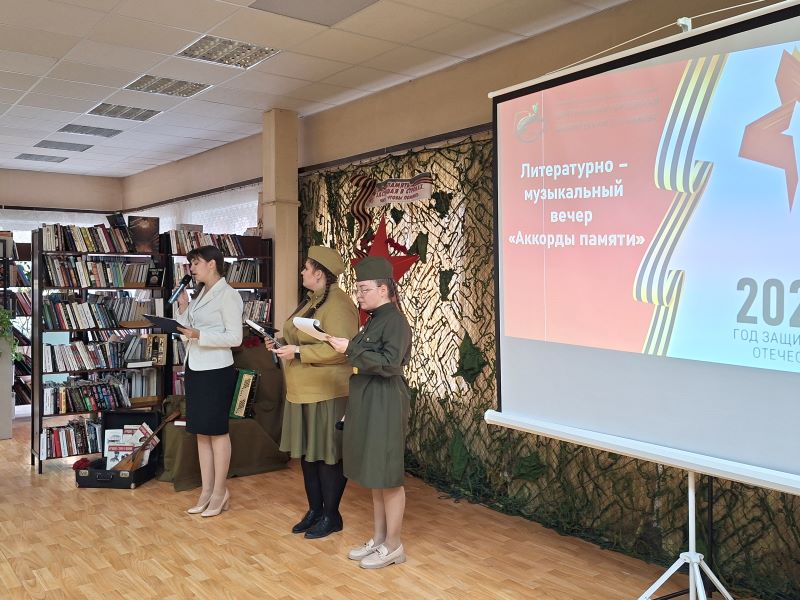 Ярким финальным событием серии мероприятий акции тотального чтения стал музыкально-литературный вечер «Аккорды памяти». Особое место в программе которого, заняли произведения, ставшие неотъемлемой частью культурного кода России. Стихи великих мастеров слова – М. Исаковского, К. Симонова, Б. Окуджавы, Л. Ошанина — звучали в исполнении ведущих вечера, трогая сердца зрителей.