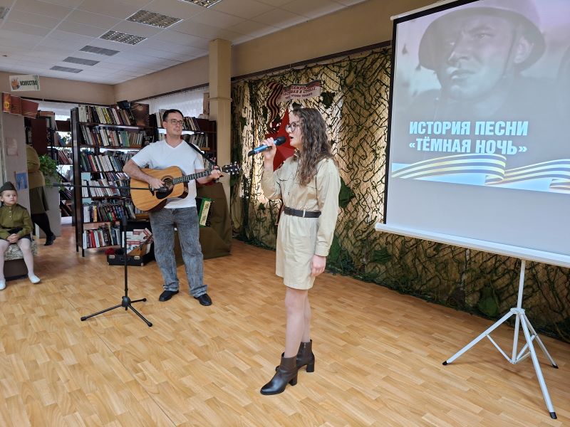 Знакомые с детства песни — «Катюша», «Десятый наш десантный батальон», «Эх, дороги» — наполнили зал особым настроением. Участники мероприятия не только исполняли эти произведения, но и погружались в историю их создания, узнавая удивительные подробности возникновения легендарных композиций, таких как «Тёмная ночь», «Смуглянка» и других, таких дорогих сердцу произведений. Вечер стал не просто концертом, а настоящим путешествием в историю, где каждое слово, каждая нота несли в себе память о подвигах и славе нашего народа.