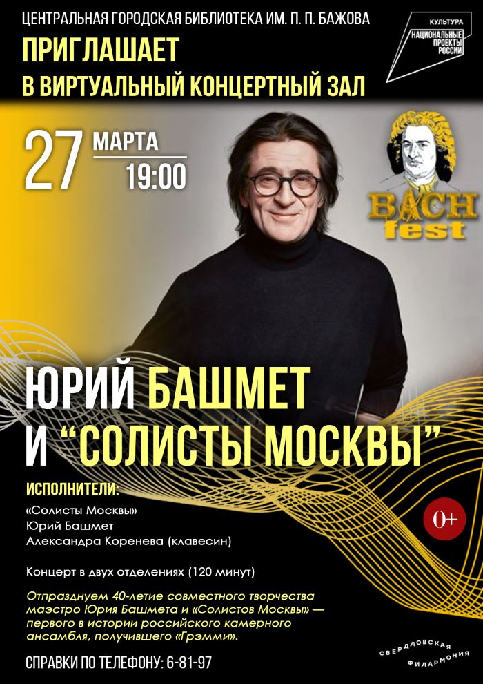 «Юрий Башмет и «Солисты Москвы». Виртуальный концертный зал (0+) 9 9 people viewed this event. О событии Ссылка на покупку билета Регистрация на мероприятие Для регистрации на это мероприятие посетите следующий URL: → Дата и время 19:00 @ 19:00 Местонахождение - Поделитесь с друзьями Facebook Twitter Linkedin Xing Pinterest