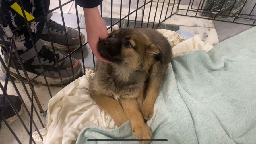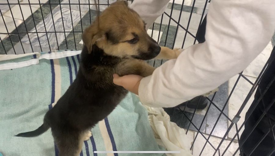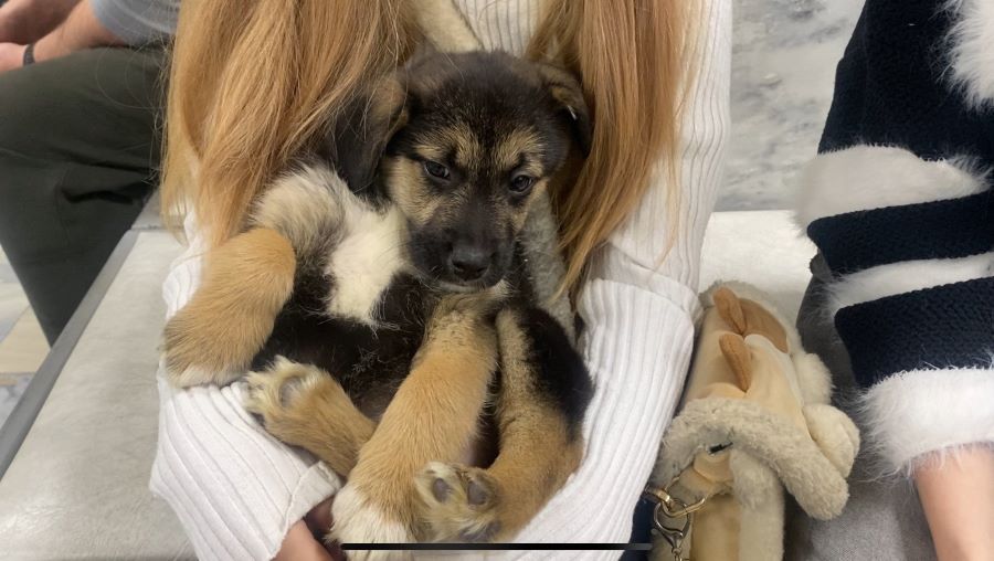Ну и куда же без щенков, появление которых сопровождалось счастливым детским визгом. Четверо малышей тут же разошлись по рукам, на которых почти всю акцию умиротворенно дремали.