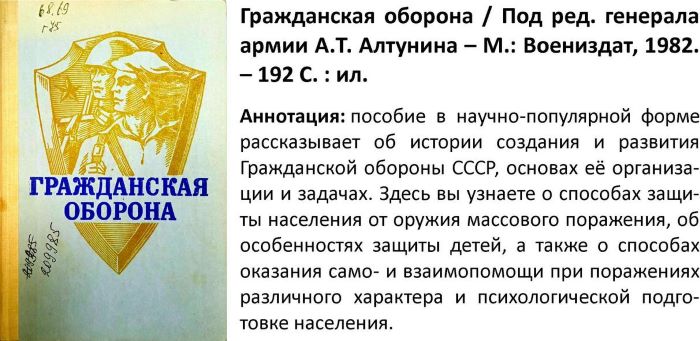Об истории и современных методах гражданской обороны в России можно узнать также из книг, находящихся в фонде нашей библиотеки: