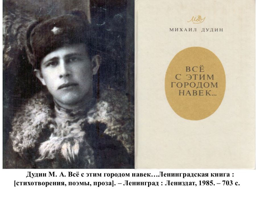 - Дудин М. А. Всё с этим городом навек…Ленинградская книга : [стихотворения, поэмы, проза] – Ленинград : Лениздат, 1985. – 703 с.