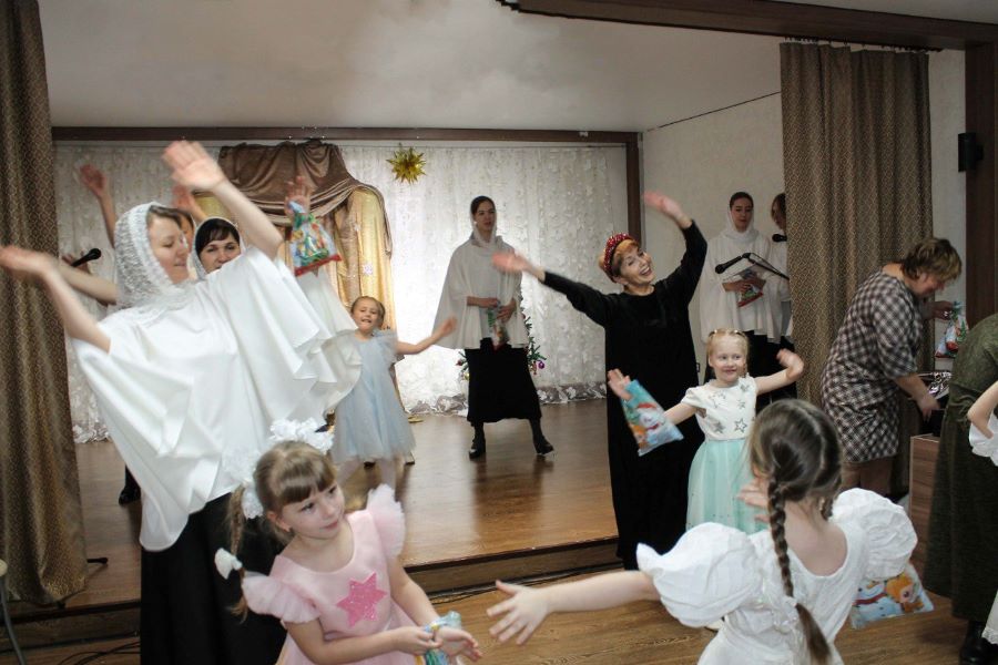 А состоялась настоящая сказка. И создали ее сами люди: замечательный хор «Духовный сад» (регент Л. Беленухина), многочисленные прихожане Храма, с удовольствием участвующие и в колядках, и в викторине, и даже во флешмобе, маленькие артисты детского сада «Ветерок» (музыкальные руководители Л. Криворучкина и С. Баранова), члены Братства православных следопытов, поставившие спектакль по мотивам притчи С. Лагерлефа, о том, как в особенную ночь в маленьком крестьянском вертепе случилось чудо рождения особенного младенца. Волхвы возвестили об этом чуде и о том, что зажглась на небе особенная звезда, Вифлеемская, главный символ радости рождения Христа.