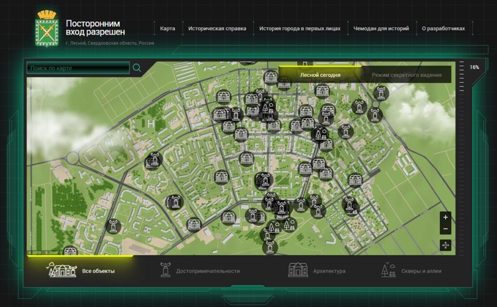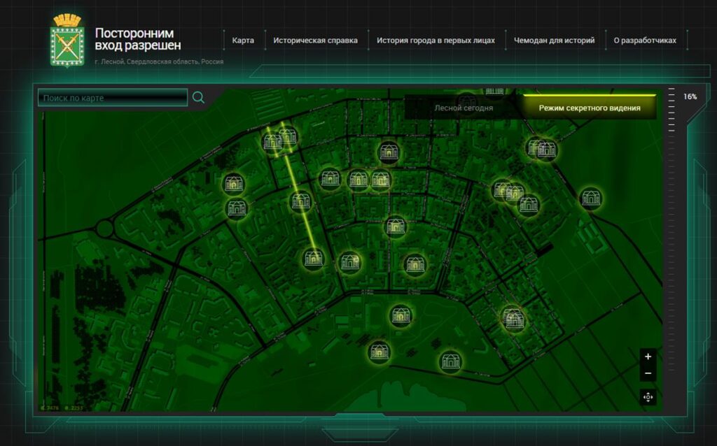 Виртуальная карта «Посторонним вход разрешён» была создана к юбилею города в 2017 году. Она познакомит любопытных не только с современным городом. На «секретной» карте можно увидеть исчезнувшие улицы и здания. Все «объекты» на карте интерактивны: нажав на значок, можно получить краткую историческую справку об объекте и посмотреть фотографии.