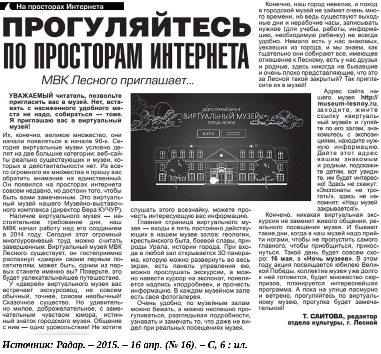 Проекты музея Лесного – одна из «изюминкок» городской виртуальной среды. С 2015 года музей реализует интернет-проекты, позволяющие и лесничанам, и гостям лучше узнать историю города. Познакомимся с ними: