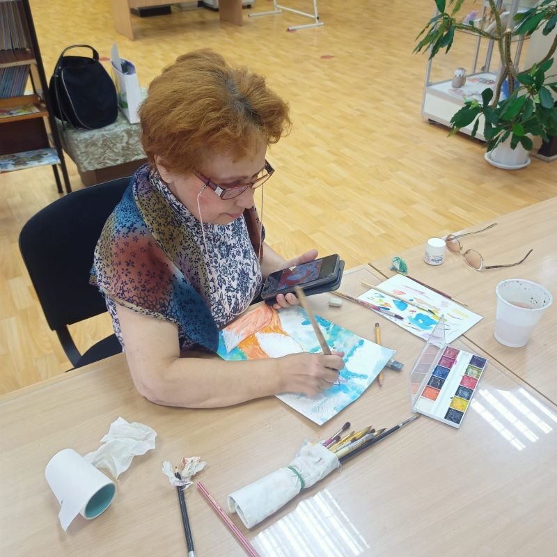 На этот раз порисовать пришли семеро человек. Очередное занятие привлекло не только старожилов, давно освоивших ведущие практики рисования и научившихся уже создавать довольно приличные рисунки, но и новичков, прослышавших о том, что если даже никогда не держал в руках кисти, научат и увлечешься так, что утонешь в этом чудесном творчестве, в этом необыкновенном досуге.