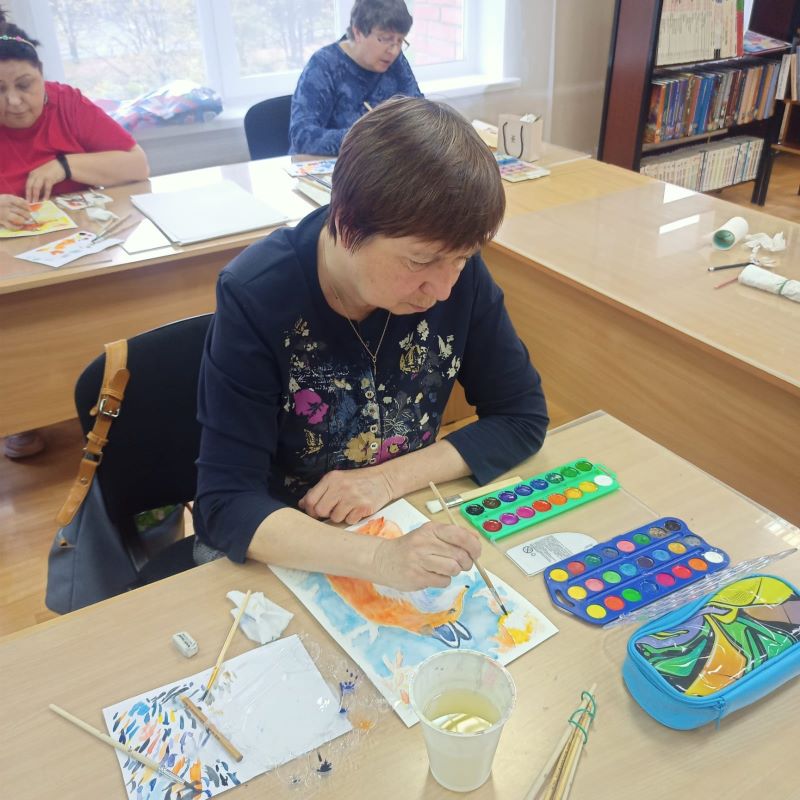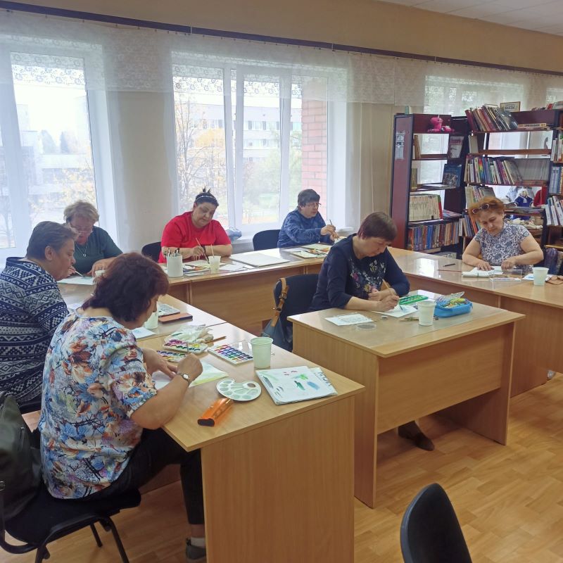 На этот раз порисовать пришли семеро человек. Очередное занятие привлекло не только старожилов, давно освоивших ведущие практики рисования и научившихся уже создавать довольно приличные рисунки, но и новичков, прослышавших о том, что если даже никогда не держал в руках кисти, научат и увлечешься так, что утонешь в этом чудесном творчестве, в этом необыкновенном досуге.