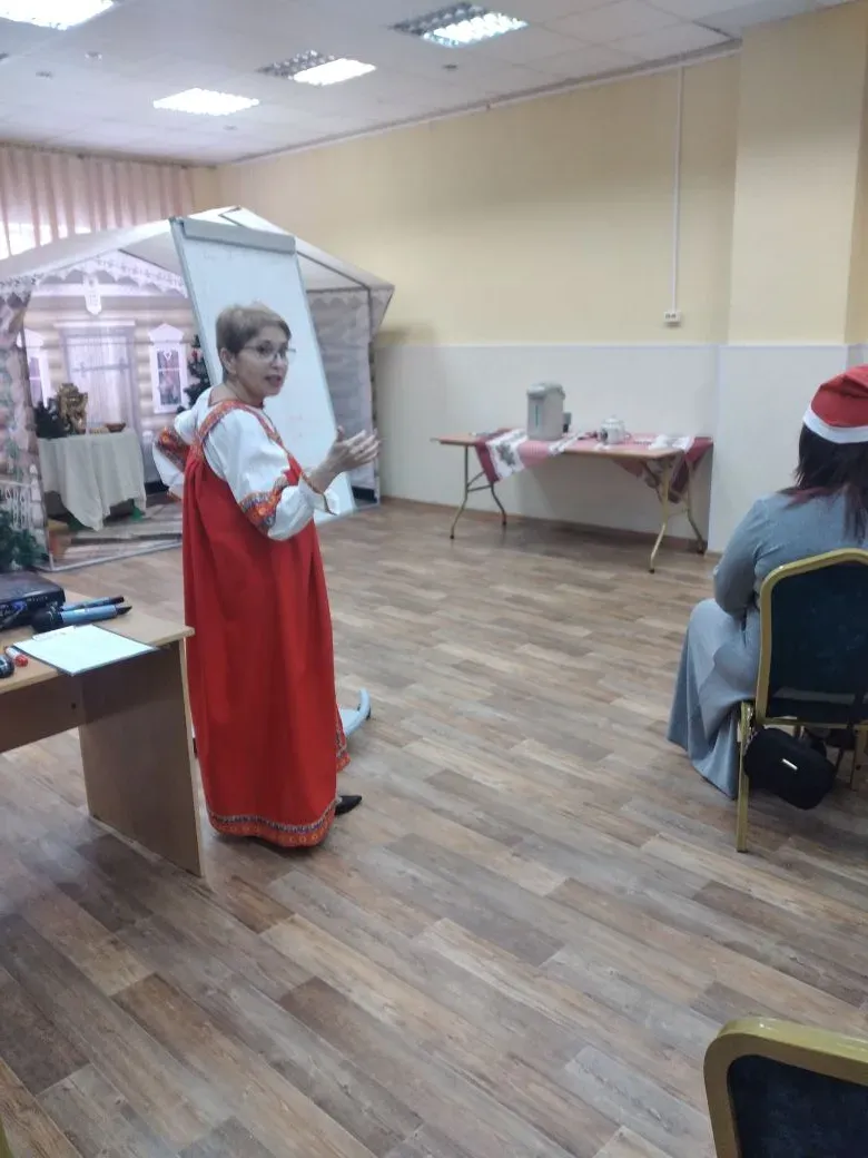 Это стихотворное приветствие прозвучало из уст приглашенного на праздничное мероприятие Деда Мороза, которого встретили особенно радушно. Поздравили с любимым зимним праздником друг друга. И пошли задания викторины, шарады, рассказы о народных приметах, заковыристые вопросы на знание праздничных традиций: в каком году появилась первая новогодняя открытка? (оказывается, в 1843ем); сколько раз бьют часы на новый год в Японии? (оказывается, 108, а не 12, как у нас); когда Петр Первый перенес новый год с осени на зиму? (оказывается, в 1700 году).