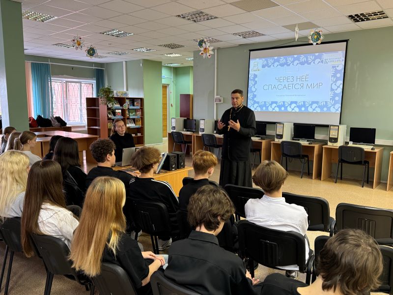 Если позволить себе небольшой экскурс в историю православия, то узнаешь об интересных и важных фактах. В таком экскурсе девятиклассники 75-ой школы участвовали вместе с настоятелем православного храма во имя св. блаженной Матроны Московской, Алексием Занозиным, придя в библиотеку Бажова на дискуссионный цикл «Православный календарь». Встреча была посвящена дню рождения Пресвятой Богородицы и называлась «Через Неё спасается мир».