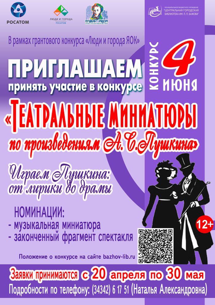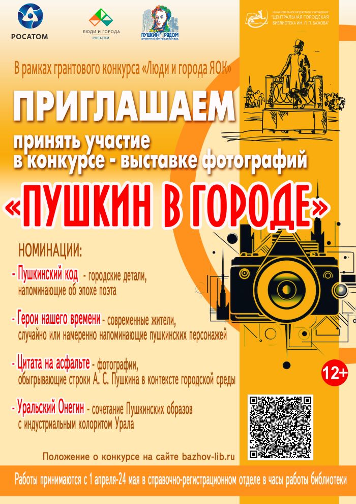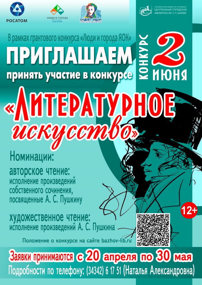 «Пушкин рядом» — литературно-поэтический фестиваль, который пройдёт в библиотеке Бажова в июне 2026 года при поддержке грантового конкурса «Люди и города ЯОК» и Госкорпорации «Росатом».