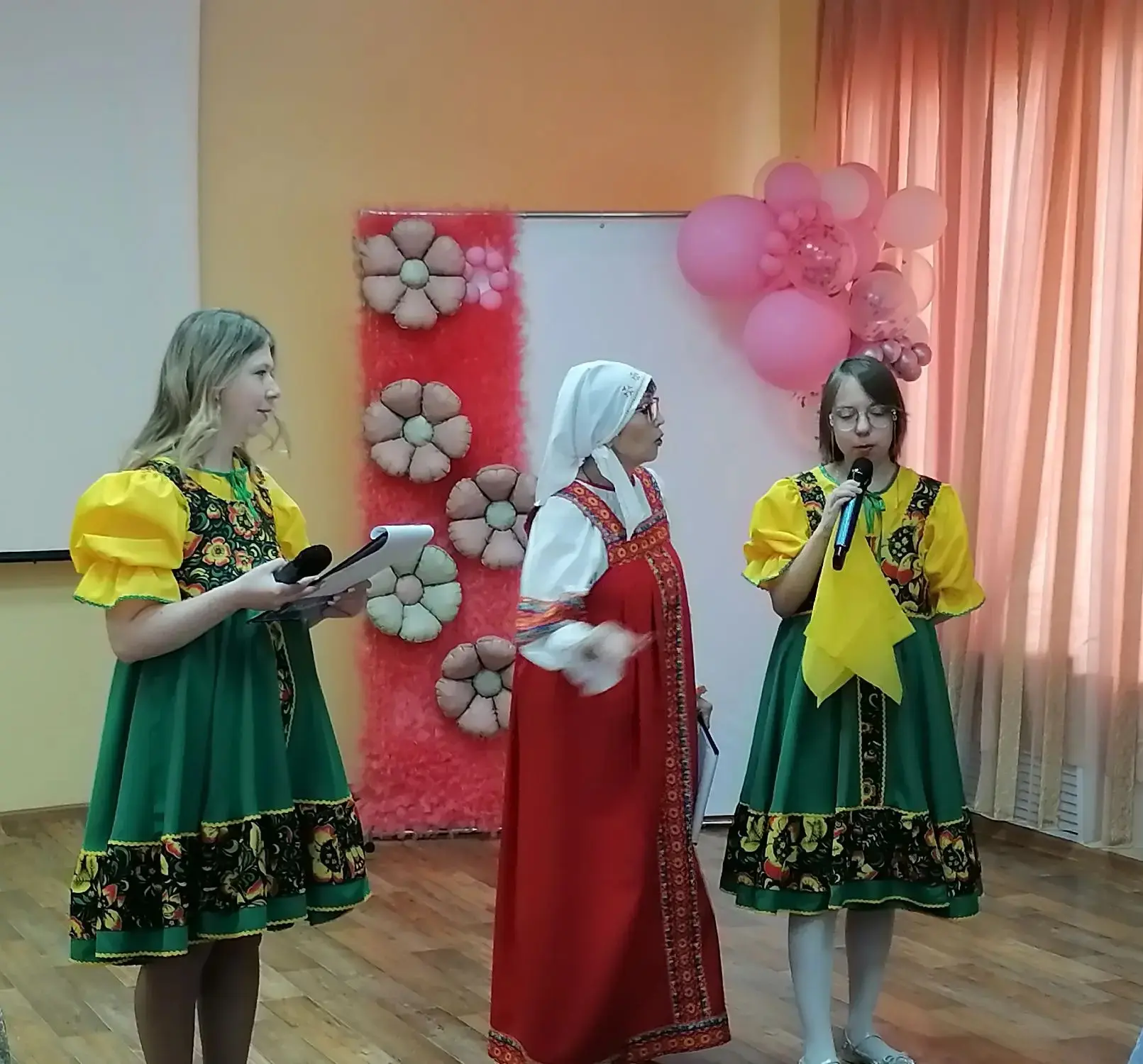 Вели программу персонажи «Весна» и «Берегиня», а помогал им в этом ученик 7 «а» класса Данил Веселов в роли веселого «Домового»