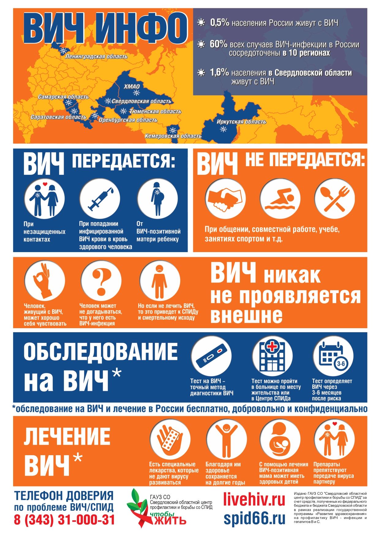 – необходимость обращения в Свердловский областной центр СПИД, его филиалы или к врачам-инфекционистам районных поликлиник городов области, где можно проконсультироваться по всем интересующим вопросам и получить рекомендации по дальнейшему наблюдению и лечению.